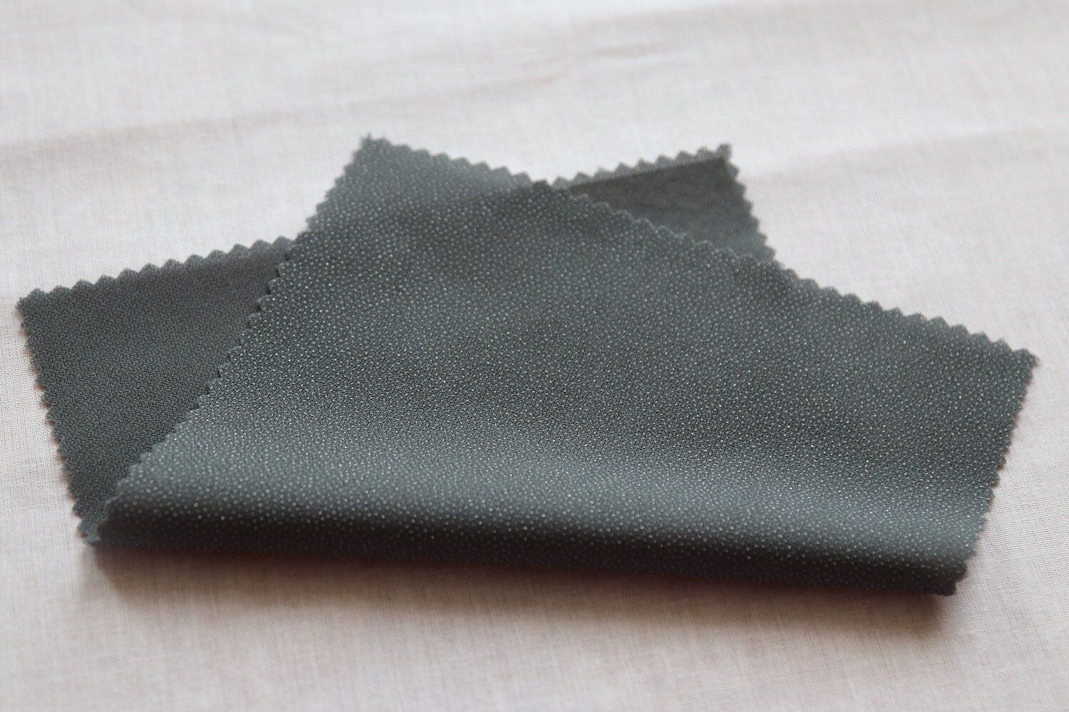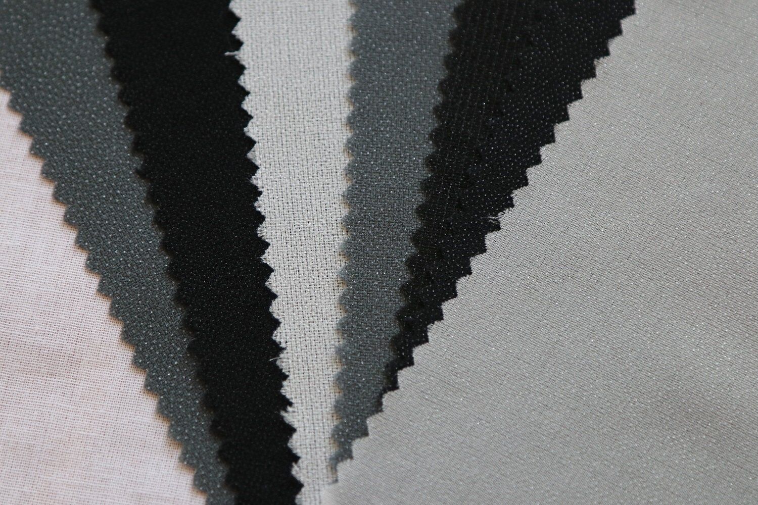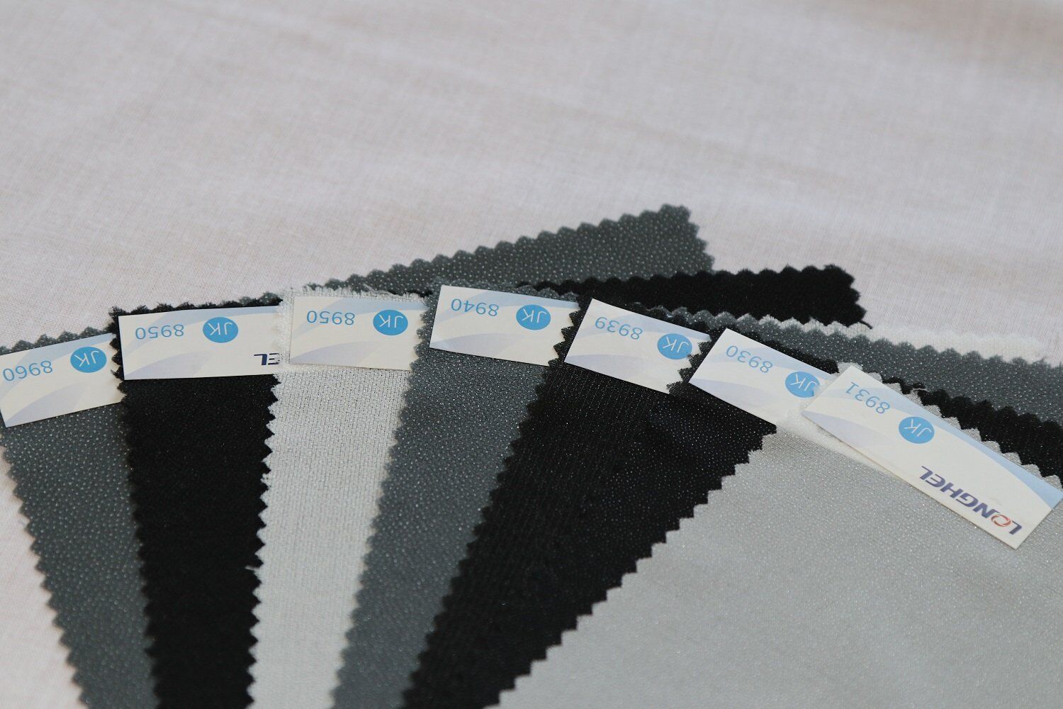 first of all, we should understand the characteristics of interlining material, interlining generally has cotton material, Polyester/cotton material and all chemical fiber material, then coating various chemical binder materials, the chemical binder materials are generally PA,PE,PU,PVC etc. The interlining has stable heat shrinkage and washing shrinkage after bleaching ,dyeing and finalize finishing. The warp and weft direction is generally controlled from -1.5% to -2%. The heat shrinkage and washing shrinkage of fabric are also controlled from -1.5% to -2%, so when interlining and fabric bonding,shrinkage synchronous,that makes the appearance flat.Otherwise, the interlining or fabric will be wrinkle, blending, even blistering.
